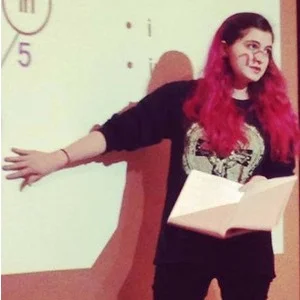 Additionally, she hosts a regular livestream on Twitch for an international audience of primarily queer viewers, and is a regular cast member on The Film Reroll, an improvised storytelling podcast.
